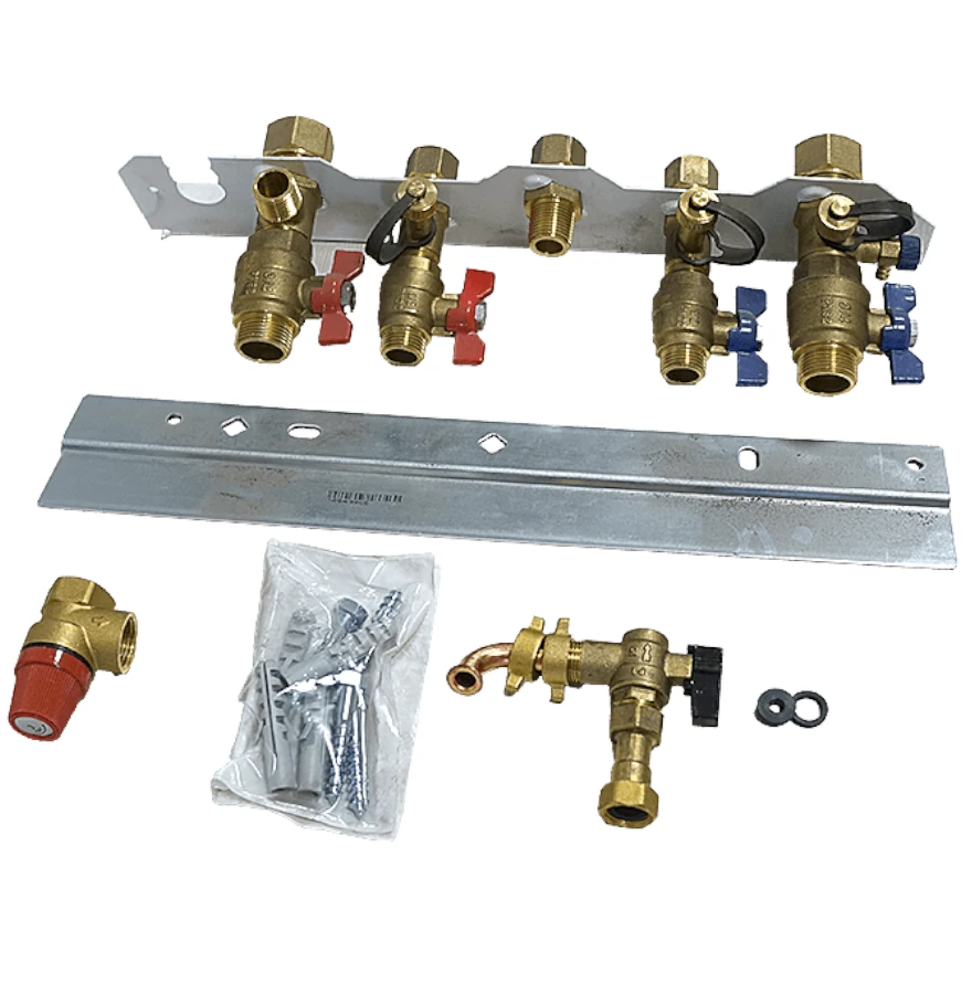 Listwa przyłączeniowa do kotła wyposażona w zawory kątowe umożliwia łatwy montaż kotła.