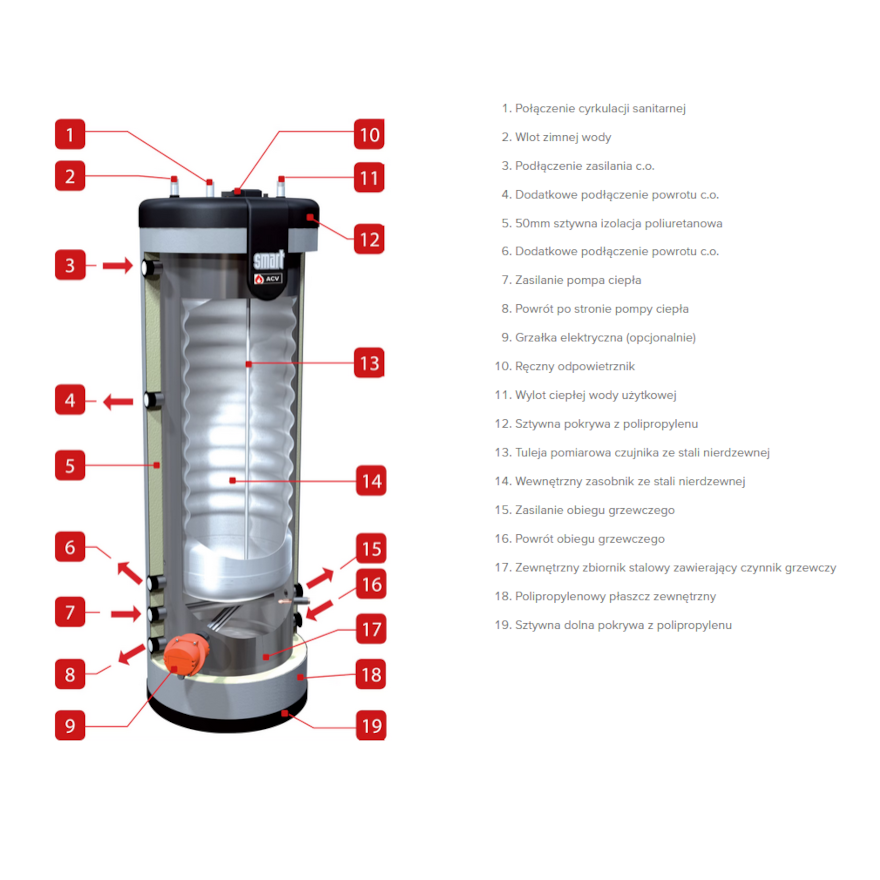 ACV ZASOBNIK NIERDZEWNY SMART GREEN STOJĄCY BEZ WĘŻOWNICY POJEMNOŚĆ 130L 786809