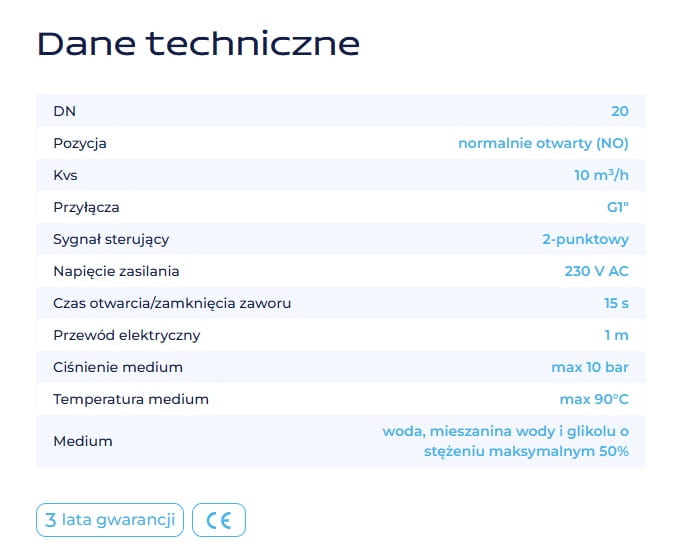 - Czas otwarcia/zamknięcia zaworu – 15 s.