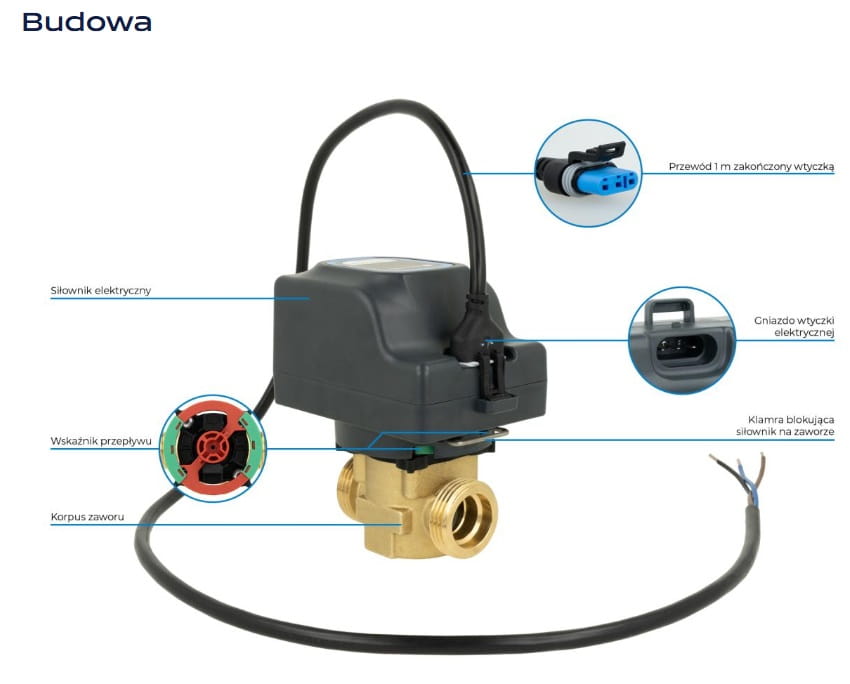 - W połączeniu ze sterownikiem lub termostatem automatyzuje pracę instalacji.