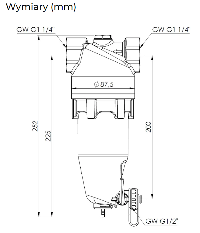 - Zawór spustowy ułatwia usuwanie zanieczyszczeń.