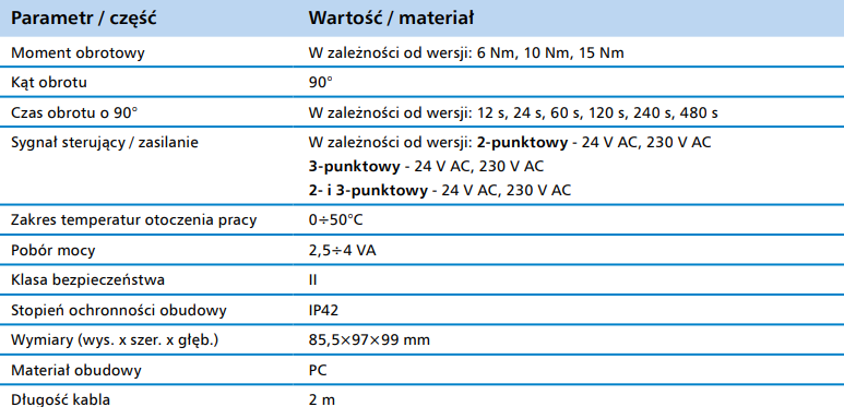 - tylko 3-pkt – wykorzystywane w układach z zaworami trójdrożnymi oraz czterodrożnymi jako zawory mieszające (mieszacze)