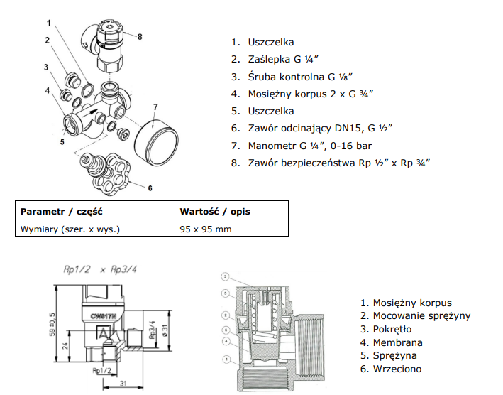 AFRISO ASB GRUPA BEZPIECZEŃSTWA ZASOBNIKA C.W.U DN20 3/4” 77 999 (zawór bezp.; manometr) 77 999