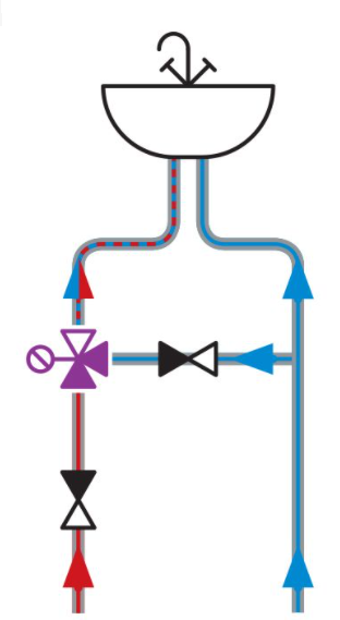 Jeżeli natomiast, wkilku punktach czerpalnych wymagane są różne temperatury, np. pod prysznicem, umywalkach zczujnikami lub przyciskiem, wówczas przed każdym zpunktów lub przed każdą strefą otej samej temperaturze wody, montujemy termostatyczny zawór mieszający ATM.