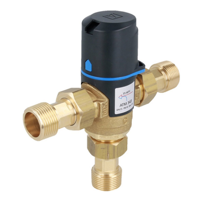 Zawory termostatyczne mieszające ATM powinny być stosowane wszędzie tam, gdzie niezbędna jest ochrona przed poparzeniem oraz wskazana jest szybka reakcja na zmiany temperatury i ciśnienia wody. Zawory ATM umożliwiają bezpieczne przegrzewanie wody w zasobnikach c.w.u. w celu ochrony przed bakteriami Legionelli, bez narażania użytkowników na poparzenie. Funkcja „bez oparzeń” powoduje zablokowanie dopływu wody ciepłej w wypadku awarii dopływu wody zimnej. W instalacjach grzewczych, np. ogrzewania podłogowego zawory ATM mogą zastępować rozbudowane i kosztowne układy regulacji. Pod plastikową pokrywką, chroniącą przed przypadkową zmianą nastawy, znajduje się pokrętło do ustawienia temperatury wody zmieszanej. Zawory termostatyczne ATM podczas pracy nie wymagają czynności konserwacyjnych i mogą być montowane w dowolnej pozycji. Przeznaczone są do pracy z czystą wodą lub wodą zawierającą maksymalnie 50% glikolu. Wykonane są z mosiądzu DZR.