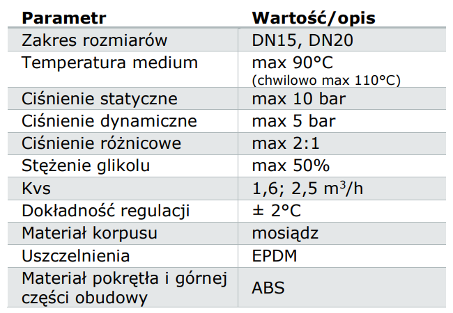 | Typ zaworu | termostatyczny zawór mieszający |
