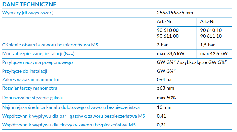 - grupa bezpieczeństwa ma zastosowanie w instalacjach, w których czynnikiem jest woda lub roztwór wody i glikolu o stężeniu nieprzekraczającym 50%.