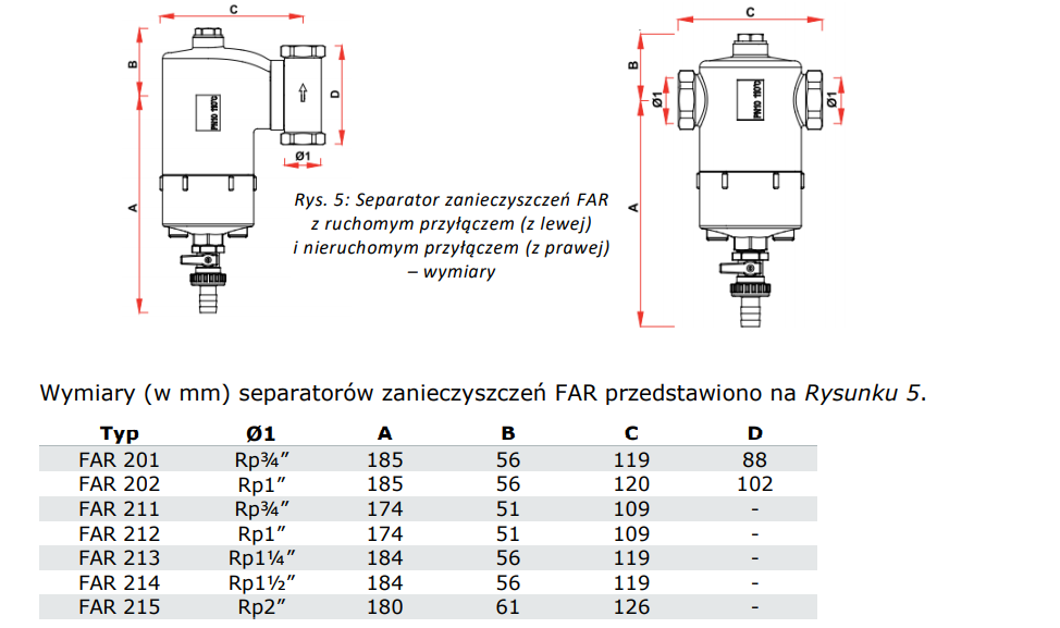 AFRISO FAR 211 SEPARATOR ZANIECZYSZCZEŃ MAGNETYCZNY Z PRZYŁĄCZEM STAŁYM POZIOMYM DN20 3/4″ GW 77 721 10