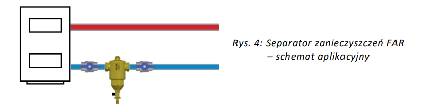 Separator zanieczyszczeń montowany jest w instalacji centralnego ogrzewania. Służy do usuwania zanieczyszczeń stałych, które mogą powodować uszkodzenie elementów instalacji.Separatory powietrza i zanieczyszczeń powinny być stosowane we wszystkich typach instalacji grzewczych. Separatory zanieczyszczeń odpowiadają za filtrację medium z wszelkich zanieczyszczeń stałych i są skuteczniejsze niż filtry siatkowe. Wyposażone są w jedną lub dwie wkładki magnetyczne do usuwania cząsteczek metalowych (np. rdzy). Separatory powietrza usuwają powietrze rozpuszczone w medium. Zastosowanie obydwu separatorów jednocześnie zwiększa żywotność instalacji i zabezpiecza urządzenia przed zanieczyszczeniem. Magnetyczne separatory FAR montuje się na powrocie, natomiast separatory powietrza na zasilaniu C.O.