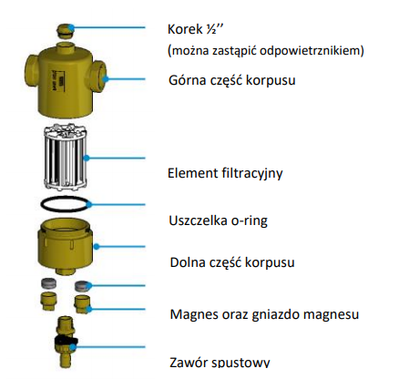 Separator zanieczyszczeń montowany jest w instalacjach centralnego ogrzewania oraz chłodniczych. Służy do usuwania zanieczyszczeń stałych, które mogą powodować uszkodzenie elementów instalacji.