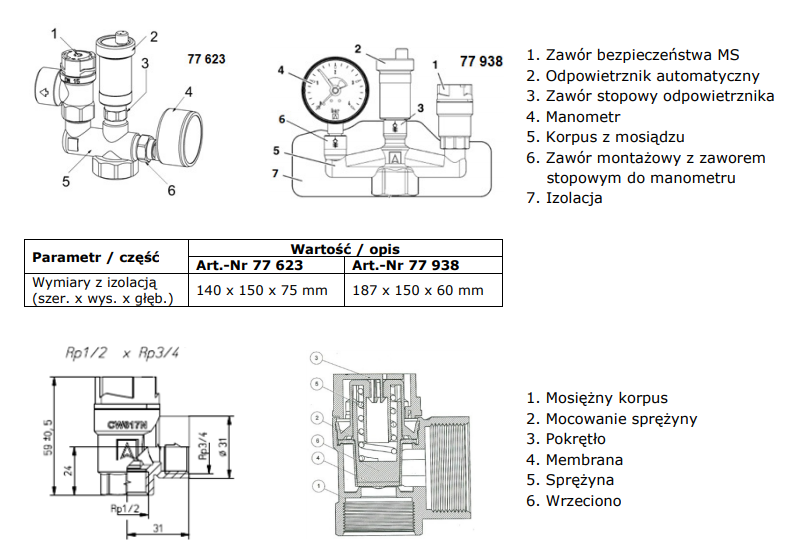 Korpus grupy bezpieczeństwa wykonany jako mosiężny odlew bez łączeń.