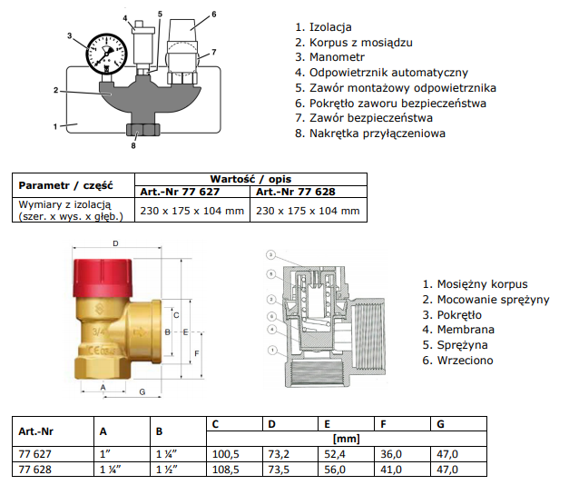 AFRISO KSG MAGNUM GRUPA BEZPIECZEŃSTWA KOTŁA DN32 5/4” 350 KW W IZOLACJI 77 628 (zawór bezp.; odpowietrznik automat.; manometr)