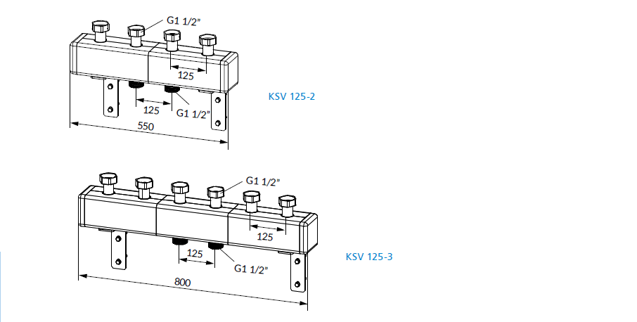 Wszystkie rozdzielacze KSV są fabrycznie testowane pod względem szczelności, posiadają izolację termiczną oraz wieszaki ścienne. Rozdzielacze KSV składają się z 2, 3, 4 lub 5 par przyłączy zasilających i powrotnych obiegów pompowych. Całość znajduje się w zdejmowanej izolacji termicznej. Wersja rozdzielaczy KSV HW wyposażona jest dodatkowo w sprzęgło hydrauliczne do rozdzielania obiegów oraz przyłącze do zamontowania zaworu spustowego lub czujnika temperatury. Przyłącza rozdzielacza ze strony kotła posiadają gwinty zewnętrzne G1 1/2”. Przyłącza od strony grup pompowych posiadają nakrętki z uszczelnieniem płaskim G1 1/2”.