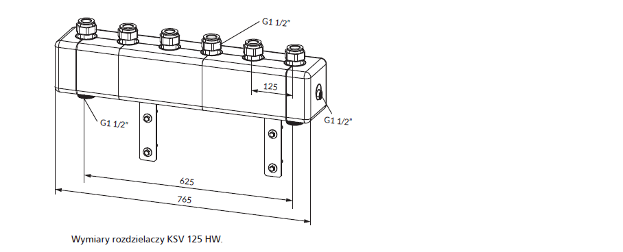Wszystkie rozdzielacze KSV są fabrycznie testowane pod względem szczelności, posiadają izolację termiczną oraz wieszaki ścienne. Rozdzielacze KSV składają się z 2, 3, 4 lub 5 par przyłączy zasilających i powrotnych obiegów pompowych. Całość znajduje się w zdejmowanej izolacji termicznej. Wersja rozdzielaczy KSV HW wyposażona jest dodatkowo w sprzęgło hydrauliczne do rozdzielania obiegów oraz przyłącze do zamontowania zaworu spustowego lub czujnika temperatury. Przyłącza rozdzielacza ze strony kotła posiadają gwinty zewnętrzne G1 1/2”. Przyłącza od strony grup pompowych posiadają nakrętki z uszczelnieniem płaskim G1 1/2”.