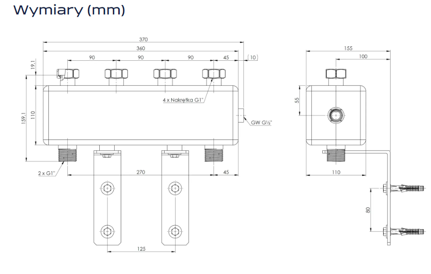 | Rozstaw od strony źródła ciepła (mm) | 270 |