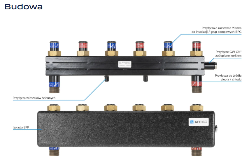 AFRISO KSV 90-3 HW ROZDZIELACZ HYDRAULICZNY 3 – OBIEGOWY ZE ZINTEGROWANYM SPRZĘGŁEM 90 233 00 (rozstaw przyłączy 90mm, do grup pompowych BPG)