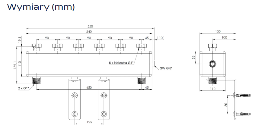| Rozstaw od strony źródła ciepła (mm) | 450 |