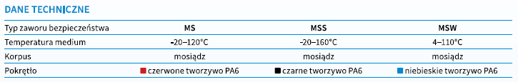 MS – zawór bezpieczeństwa do instalacji grzewczych (pokrętło czerwone). Zawory bezpieczeństwa służą do zabezpieczenia urządzenia przed nadmiernym wzrostem ciśnienia w instalacji.
