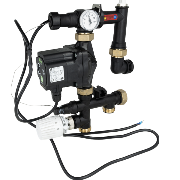 - Termostat bezpieczeństwa pompy chroni instalację płaszczyznową przed uszkodzeniem na skutek zbyt wysokiej temperatury medium.