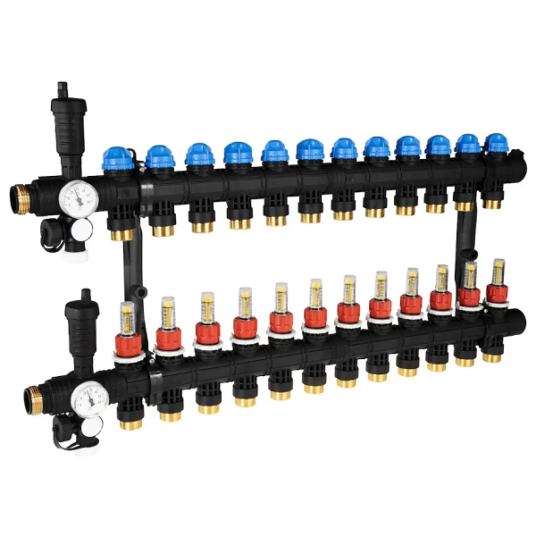 - Rozprowadza ciepło/chłód ze źródła na poszczególne pętle instalacji płaszczyznowej.