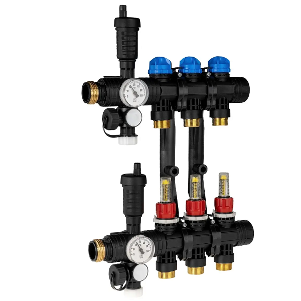 - Rozprowadza ciepło/chłód ze źródła na poszczególne pętle instalacji płaszczyznowej.