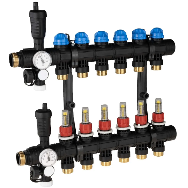 AFRISO PROCALIDA EF1 POLIAMIDOWY 6 OBWODOWY ROZDZIELACZ DO OGRZEWANIA PODŁOGOWEGO Z ZAWORAMI TERMOSTATYCZNYMI I PRZEPŁYWOMIERZAMI 81 366 (wyposażony w odpowietrzniki auto i termometry)