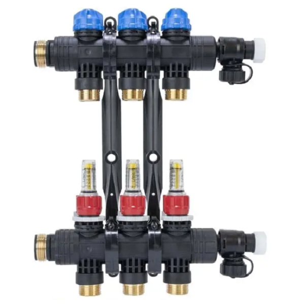 - Rozprowadza ciepło / chłód ze źródła na poszczególne pętle instalacji płaszczyznowej.