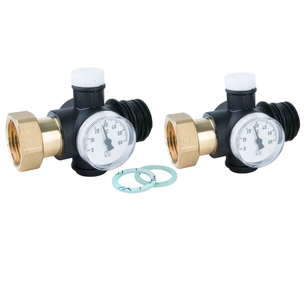 Zestaw dwóch przyłączy z nakrętką G1″ do ProCalida EF1 K z termometrami i odpowietrznikami ręcznymi