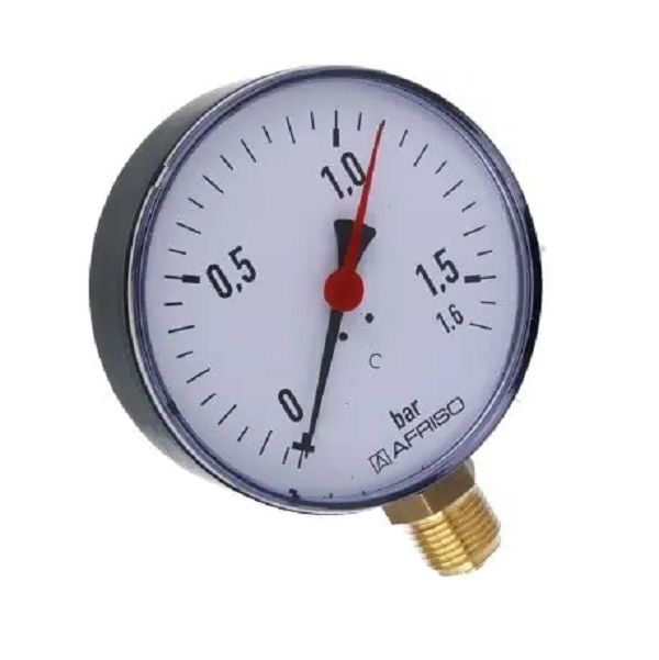 AFRISO RF100 MANOMETR RADIALNY 0-1,6 BAR 63 610 (fi 100mm; G1/2″, kl. 2,5)