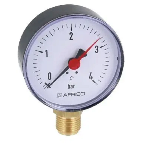 AFRISO RF80 MANOMETR RADIALNY 0-4BAR 63 562 (tarcza 80mm; G1/2″, kl. 2,5)