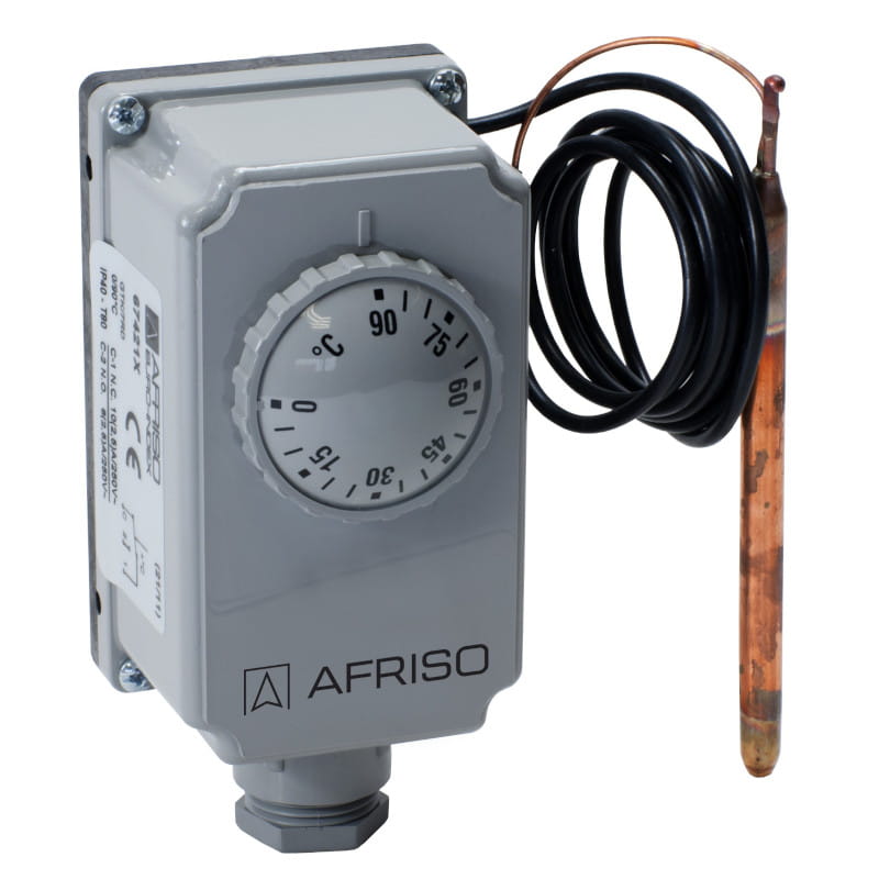 Termostat zanurzeniowy TC2 jest nastawnym termostatem przełączającym z nastawą zewnętrzną. Nastawa odbywa się poprzez pokrętło w górnej części obudowy. Pomiar temperatury odbywa się poprzez kapilarę.