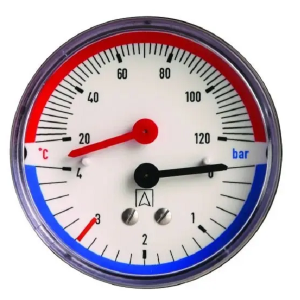 Termomanometr TM 63, fi63 mm, 0÷4 bar, 20÷120°C, G1/4″, ax, kl. 2,5