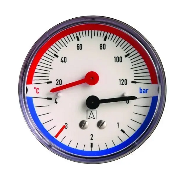 Termomanometr służy do jednoczesnego pomiaru temperatury i ciśnienia badanego medium. Na króćcu przyłączeniowym znajduje się uszczelnienie. W zestawie z termomanometrem dostarczany jest zawór montażowy, który umożliwia wymianę termomanometru bez konieczności spuszczenia medium z instalacji.