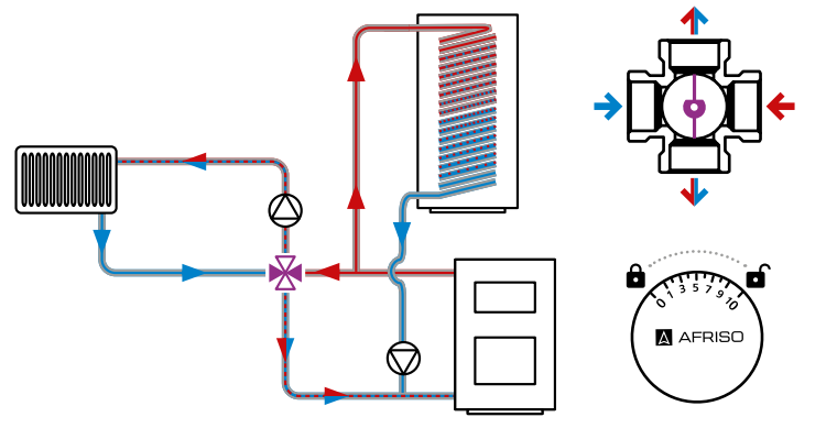 Zawory 4-drogowe stosowane są przy kotłach na paliwo stałe, jako zawory mieszające zjednoczesnym podniesieniem temperatury powrotu do kotła. Zpowodzeniem mogą być także stosowane jako armatura regulacyjna winstalacjach grzewczych zkotłami żeliwnymi zplanikami olejowymi lub gazowymi.