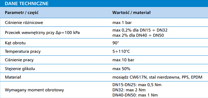 | Typ zaworu | zawór 3-dr mieszająco, rozdzielający |