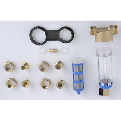 - Przezroczysta obudowa filtra z odpornego na uderzenia materiału syntetycznego pozwalająca w prosty sposób kontrolować stopień zanieczyszczenia wkładu