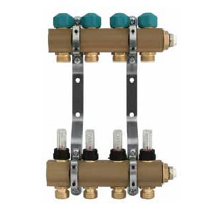 Rozdzielacz mosiężny 1″ z wkładkami termostatycznymi i przepływomierzami, 5 obwodów.