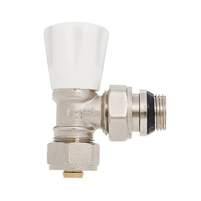 Zawór grzejnikowy ze śrubunkiem do PEX, kątowy 1/2″x16 MM