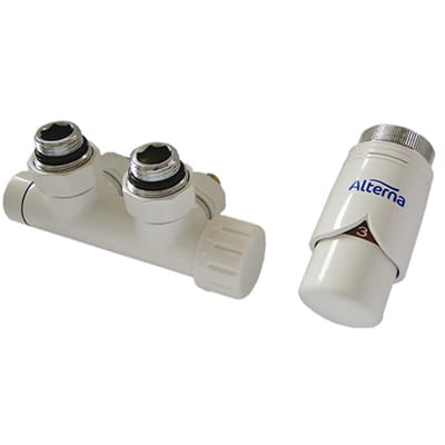 ALTERNA ZESTAW ZAWORÓW GRZEJNIKOWYCH DUOPLEX Z TERMOSTATEM BIAŁY CU LEWY