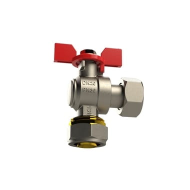 ARCO SENA ZAWÓR KĄTOWY DO RUR WIELOWARSTWOWYCH PN30 RN-PEX POKRĘTŁO MOTYLKOWE CZERWONE 1/2RN – 16×2 868210
