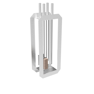 Zestaw praktycznych narzędzi kominkowych R4 zaprojektowany został z w nowoczesnej stylistyce. W całości wykonany ze stali inox. W skład zestawu wchodzą: stojak, szczotka, pogrzebacz, szufelka oraz szczypce. Pomaga utrzymać kominek w czystości oraz stanowi oryginalny element wystroju wnętrza.