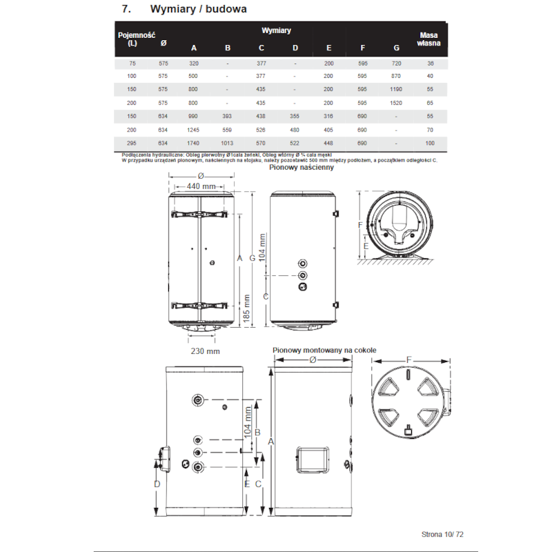 | Możliwość podłączenia wężownic | nie dotyczy |