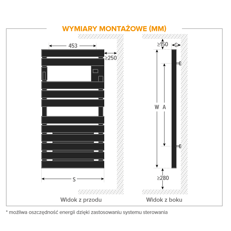 ATLANTIC CZARNA SUSZARKA ŁAZIENKOWA ADELIS W WERSJI ELEKTRYCZNEJ 500W 556x1027MM