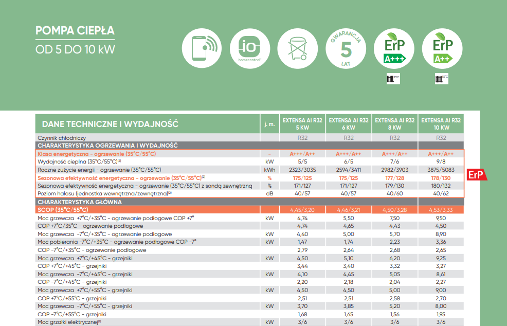 Dzięki najnowocześniejszym rozwiązaniom technicznym zewnętrzny moduł charakteryzuje bardzo cicha praca, generująca hałas na poziomie około 41 dB ( model 5 kW i 6 kW )