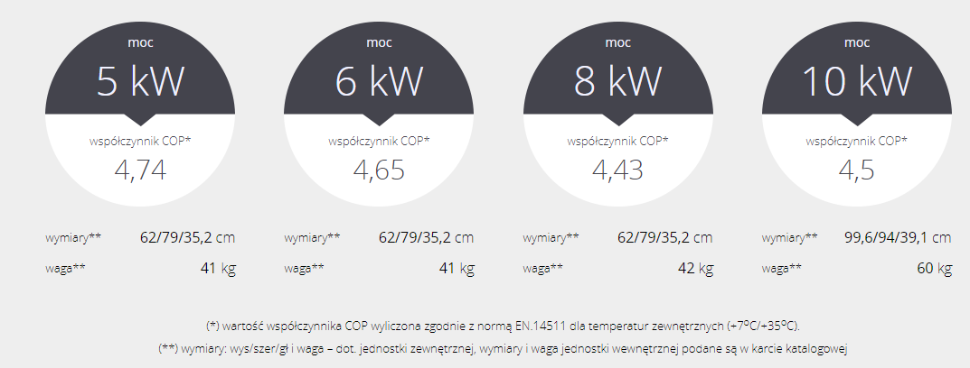 Dzięki najnowocześniejszym rozwiązaniom technicznym zewnętrzny moduł charakteryzuje bardzo cicha praca, generująca hałas na poziomie około 41 dB ( model 5 kW i 6 kW )