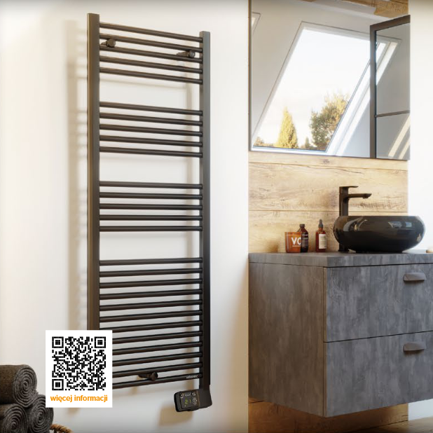 ATLANTIC SUSZARKA ŁAZIENKOWA THEOLA BLACK W WERSJI ELEKTRYCZNEJ 600W 600X1470 MM – 100448