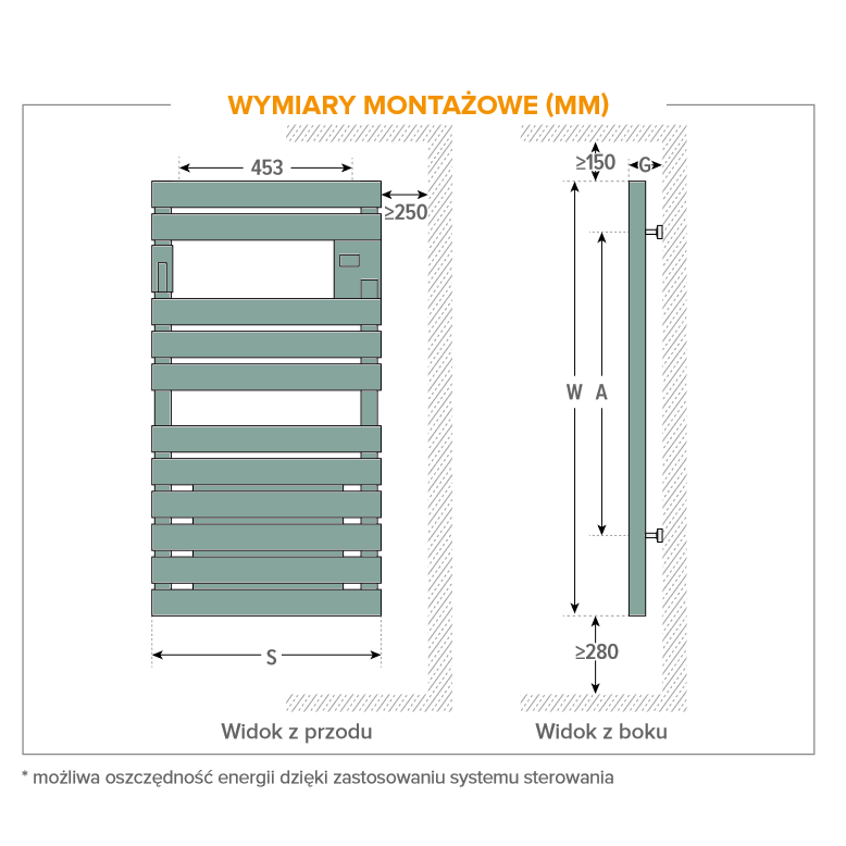 ATLANTIC MORSKA SUSZARKA ŁAZIENKOWA ADELIS W WERSJI ELEKTRYCZNEJ 500W 556x1027MM