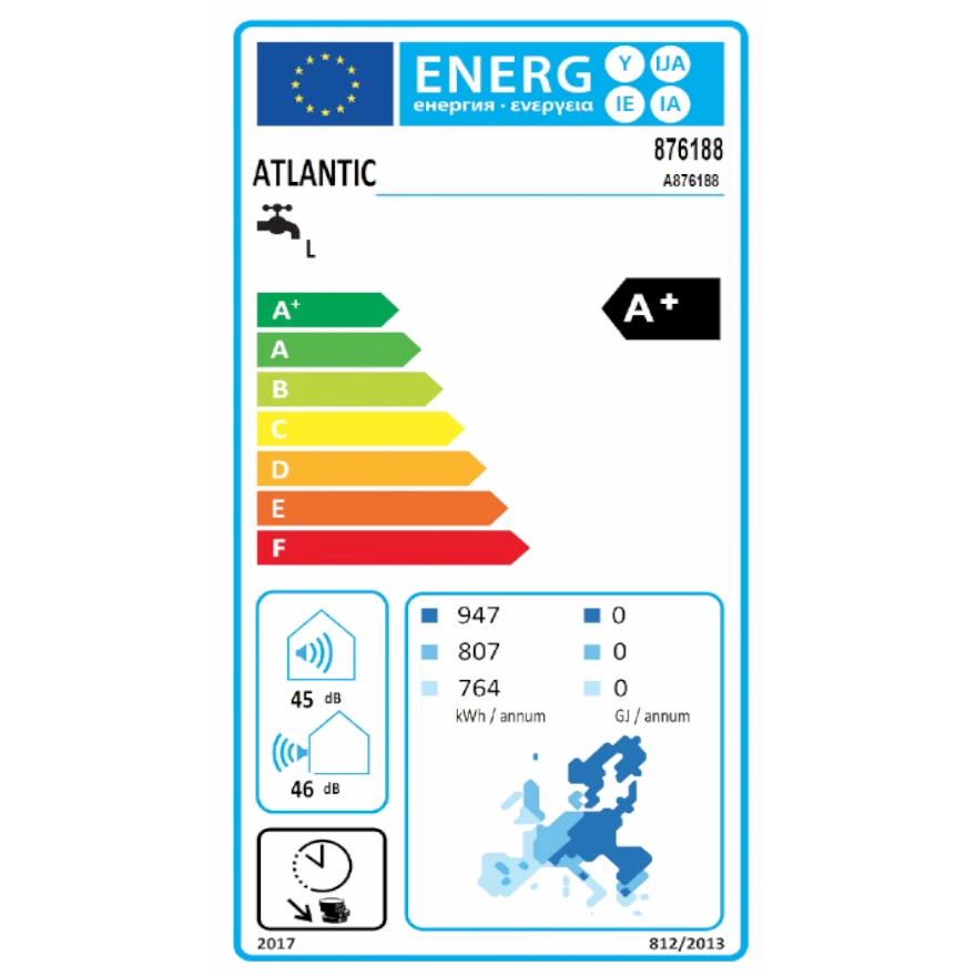 | Klasa sezonowej efektywności energetycznej ogrzewania wody (klimat umiarkowany) | A+ |