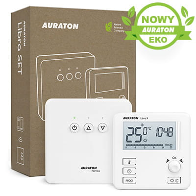 Tygodniowy, bezprzewodowy regulator temperatury w zestawie ze sterownikiem urządzenia grzewczego – Auraton Libra SET: