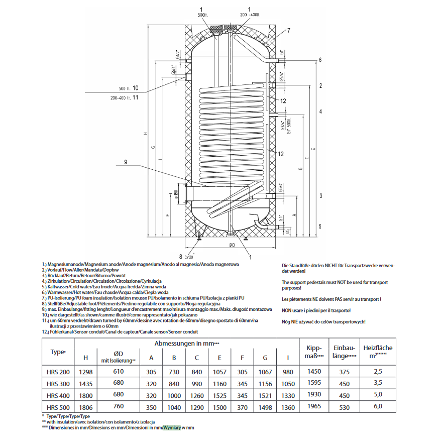 KOMPLET HRS 400L MODEL STOJĄCY, 1 WĘŻOWNICA 5M2 + IZOLACJA ZASOBNIKA HRS 400L